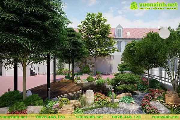 Cây to ở xung quanh hồ cá koi: