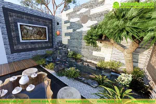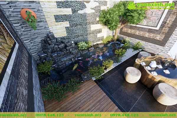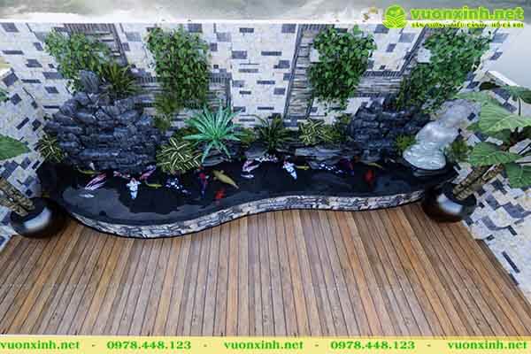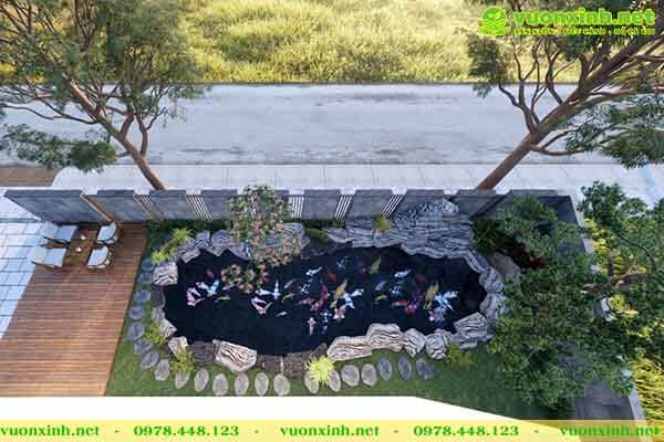 3. Tiêu cảnh mẫu hồ cá koi mini sân vườn.